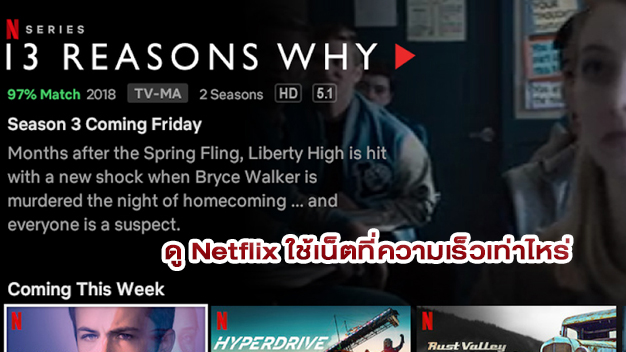 ความเร็วเน็ตที่ใช้ในการดู Netflix / ความละเอียด
