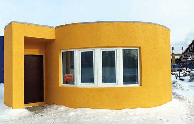 โดยเร็วๆนี้ บริษัทได้สาธิตการสร้างบ้านด้วยเครื่องพิมพ์ 3 มิติขนาดยักษ์ที่เมืองสตูปิโน ห่างจากกรุงมอสโก เมืองหลวงของประเทศรัสเซียราวๆ 60 ไมล์ โดยใช้เวลาในการก่อสร้างเพียง 1 วันเท่านั้น บ้านทรงเรียบง่ายดังกล่าวมีพื้นที่ใช้สอยรวม 400 ตารางฟุต ถูกก่อสร้างด้วยเครื่องพิมพ์ที่ฉีดคอนกรีตผสมสำเร็จรูปออกมาเป็นตัวบ้านตามโปรแกรมที่ตั้งไว้ เครื่องพิมพ์สามารถทำงานแม้ในสภาพอากาศหนาวเย็น แต่เนื่องจากคอนกรีตผสมใช้งานได้ดีในอุณหภูมิเหนือ 41 องศาฟาเรนไฮท์ (สูงกว่า 5 องศาเซลเซียส) บริษัทจึงต้องสร้างเต๊นท์คลุมขณะก่อสร้าง เมื่อเครื่องพิมพ์ขึ้นรูปบ้านเสร็จทั้งหลังแล้ว ช่างก็สามารถทาสีและเข้าไปตกแต่งภายใน สรุปแล้วบ้านหลังนี้ใช้เงินลงทุนก่อสร้าง 10,134 ดอลลาร์ หรือราว 3.62 แสนบาท คิดเป็นต้นทุนเฉลี่ยตารางเมตรละ 275 ดอลลาร์ (ราว 9,800 บาท)